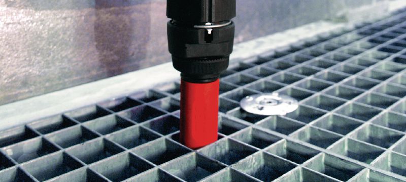 - Upevnenie roštu do ocele, plechu v slabo korozívnom prostredí C1, ako napr. na suchých miestach alebo v interiéri