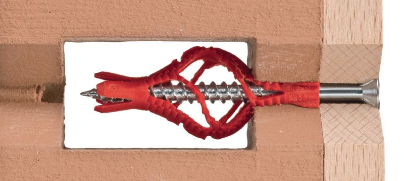 - Optimalizovaná inštalácia - konštrukcia proti otáčaniu s prepracovanými lamelami pomáha predchádzať otáčaniu počas skrutkovania, čo umožňuje rýchlejšiu a bezpečnejšiu inštaláciu, najmä v dutinových tehlách a pórobetóne