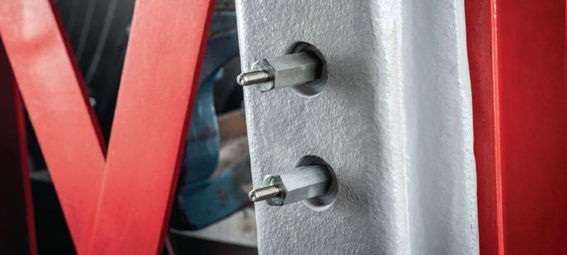 Závitový odsadený nástavec v prevedení samec/samica z uhlíkovej ocele na upevňovanie na oceľové nosníky s pasívnym protipožiarnym náterom (PFP)